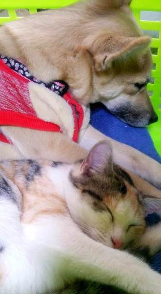 友人宅のワンニャンは仲良しみたいです。