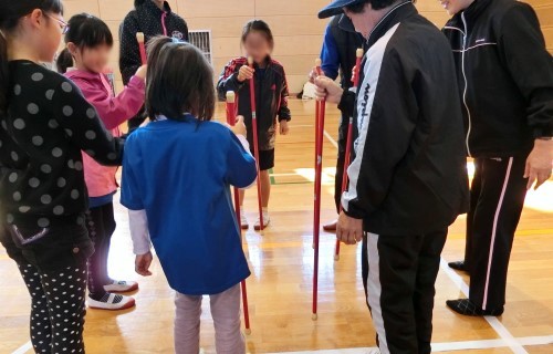とんとんパ・・・棒を床にとんとんと打ち付け「パ」で棒を倒さないように隣にずれるゲーム