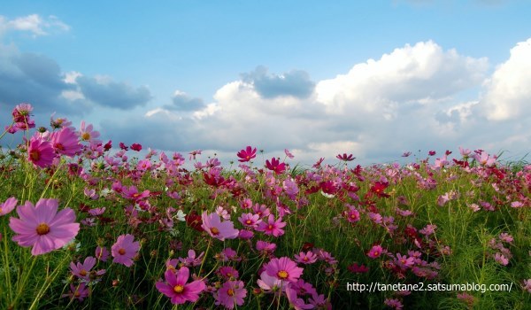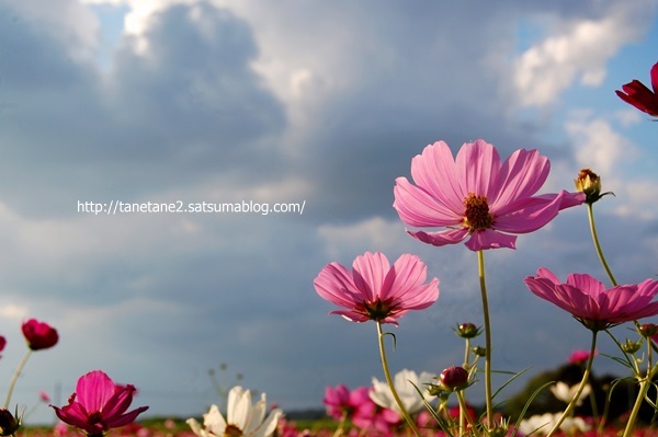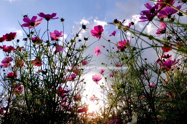 コスモスたちが空を見上げて 楽しそうにお話していますね