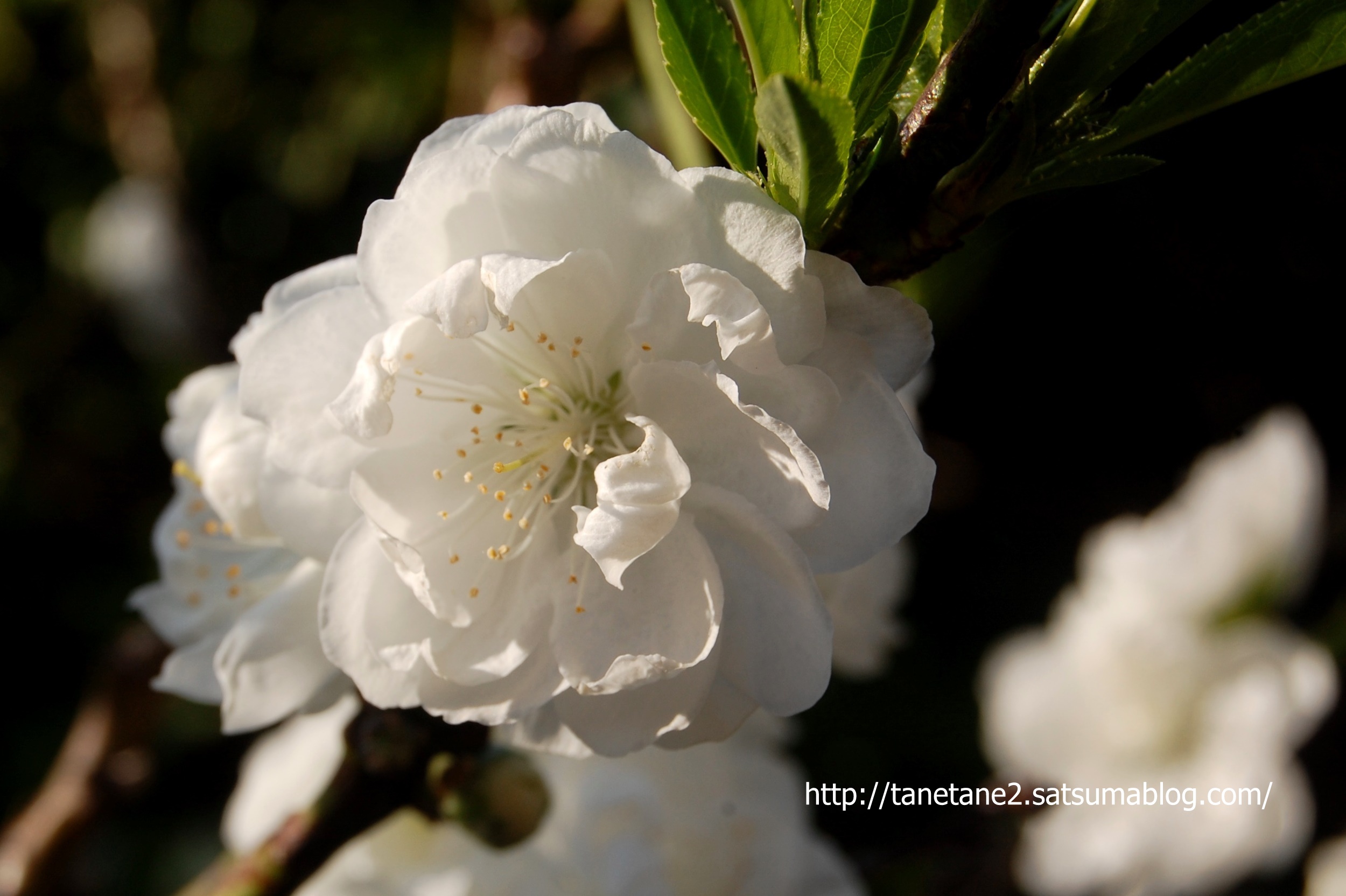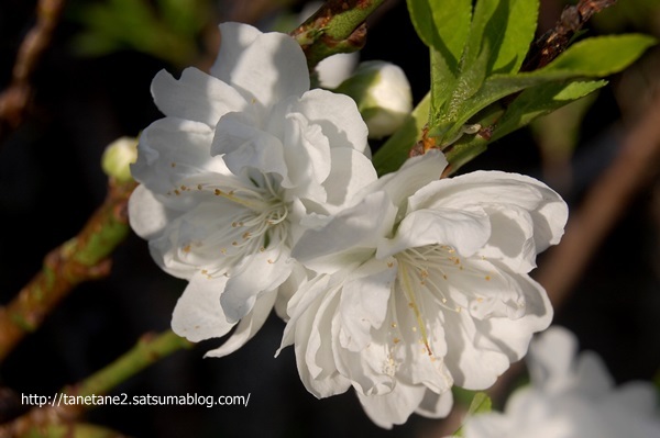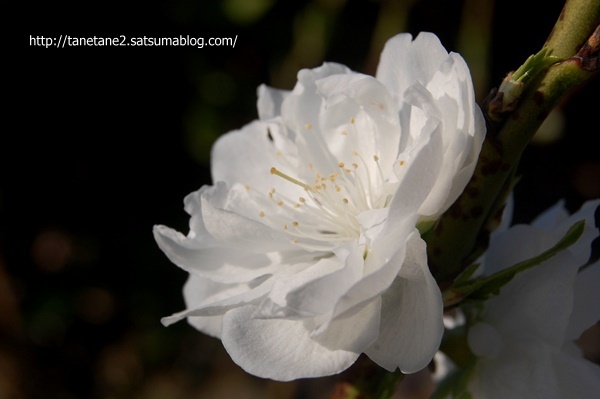 その後に薄ピンクの一重の桃の花が咲き、今は白が咲いています。
